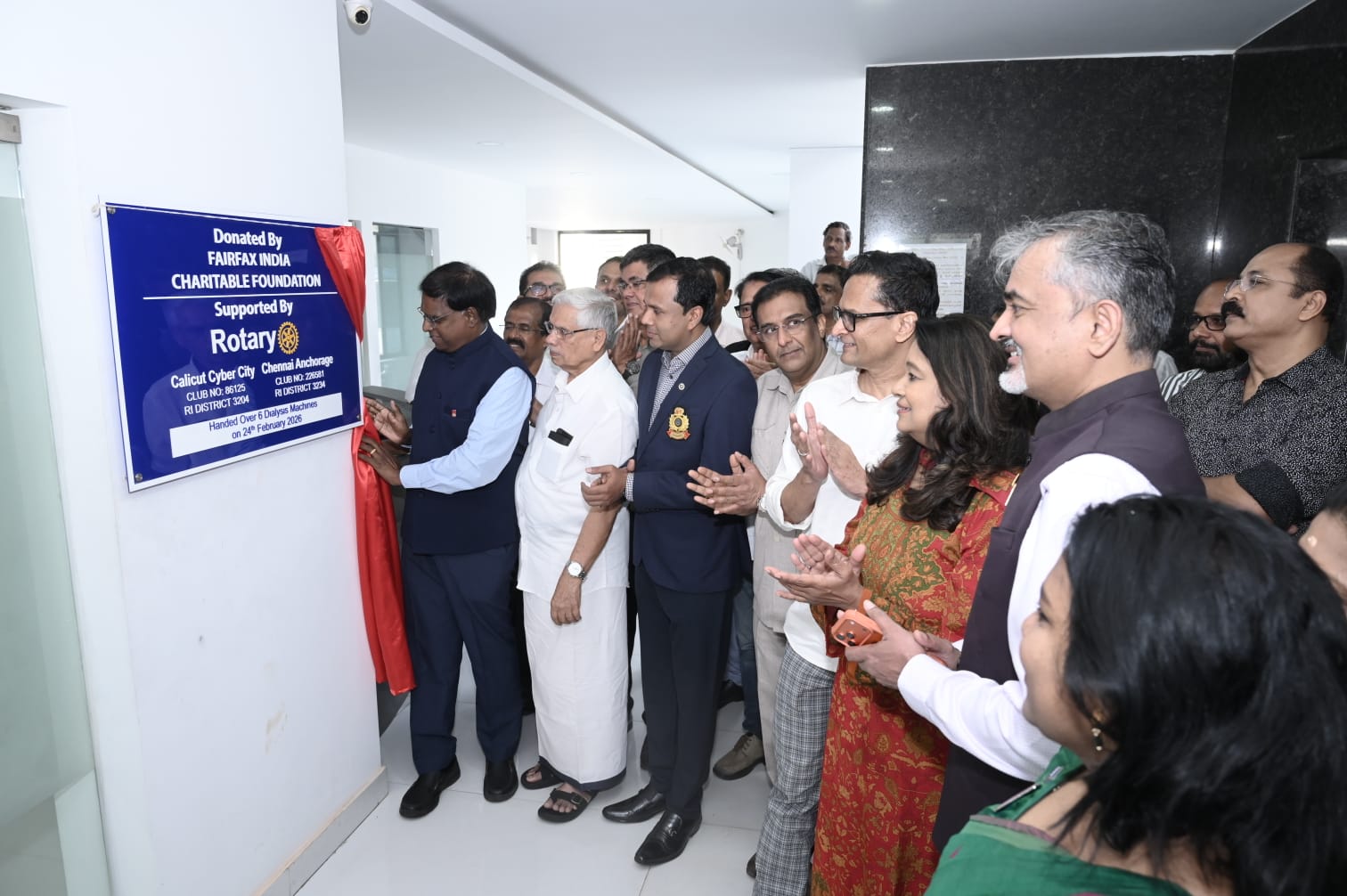 റോട്ടറി കാലിക്കറ്റ് സൈബർസിറ്റിയും റോട്ടറി ചെന്നൈ ആങ്കറേജും സംയുക്തമായി ബേപ്പൂർ ഡെവലപ്മെൻ്റ് മിഷന് 6 ഡയാലിസിസ് മെഷീൻ കൈമാറുന്ന പദ്ധതി റോട്ടറി ക്ലബ് മുൻ ഡിസ്ട്രിക്ട് ഗവർണർ ജെ ശ്രീധർ ഫലകം നീക്കി